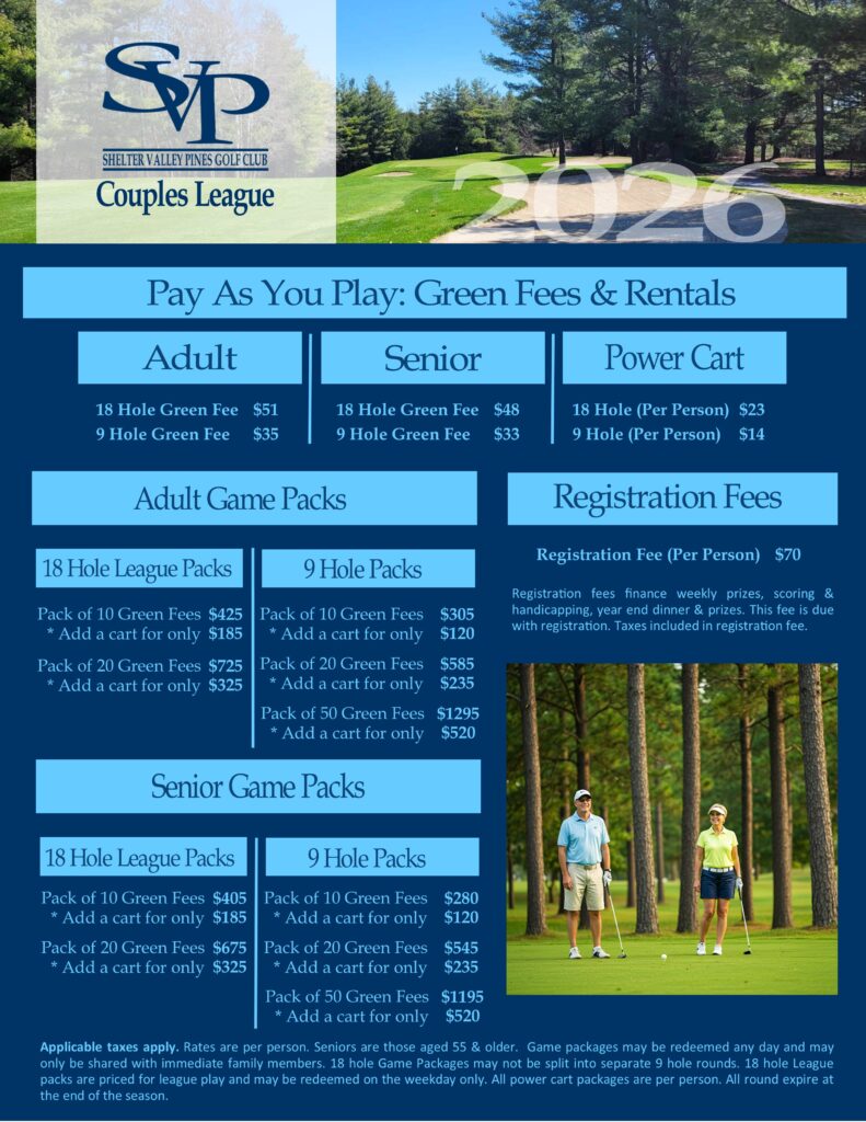 To register for the 2025 season, please fill out the form below and send your registration fee by E Transfer to sheltervalleypines@gmail.com. Please check out our available tee times below.