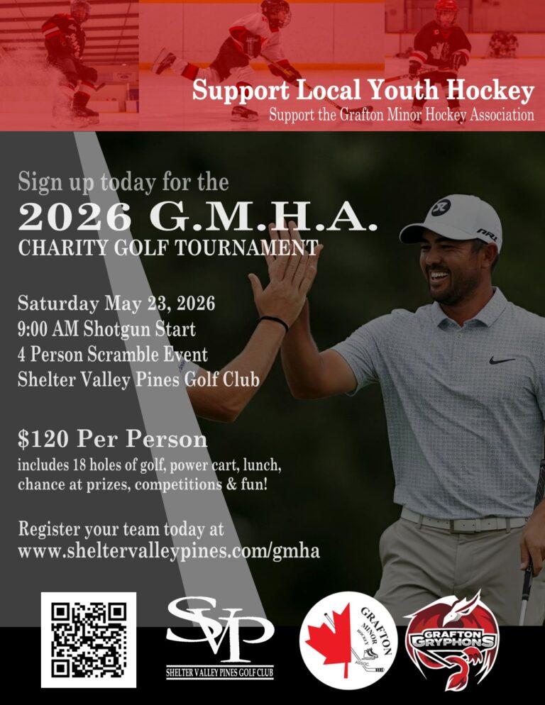 Enjoy a fun filled day of golf with your friends this spring as you support our local youth hockey! This event will feature 18 holes of golf with lunch and many on course competitions including closest to the pins, in the drink, shortest drive and many more! There will also be prizes for the low score and the most honest team! Can’t golf but still want to support this great cause? Advertise with us during this fun event with your business proudly displayed as a hole sponsor or cart sponsor. Contact us at graftonmh@gmail.com for more details.